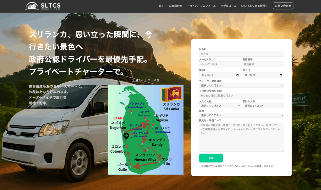 「Sri Lanka Taxi Service」 は、スリランカ政府公認のチャーター事業会社 WinS D Group (Pvt) Ltd が運営するタクシー/専用車手配サービスです。